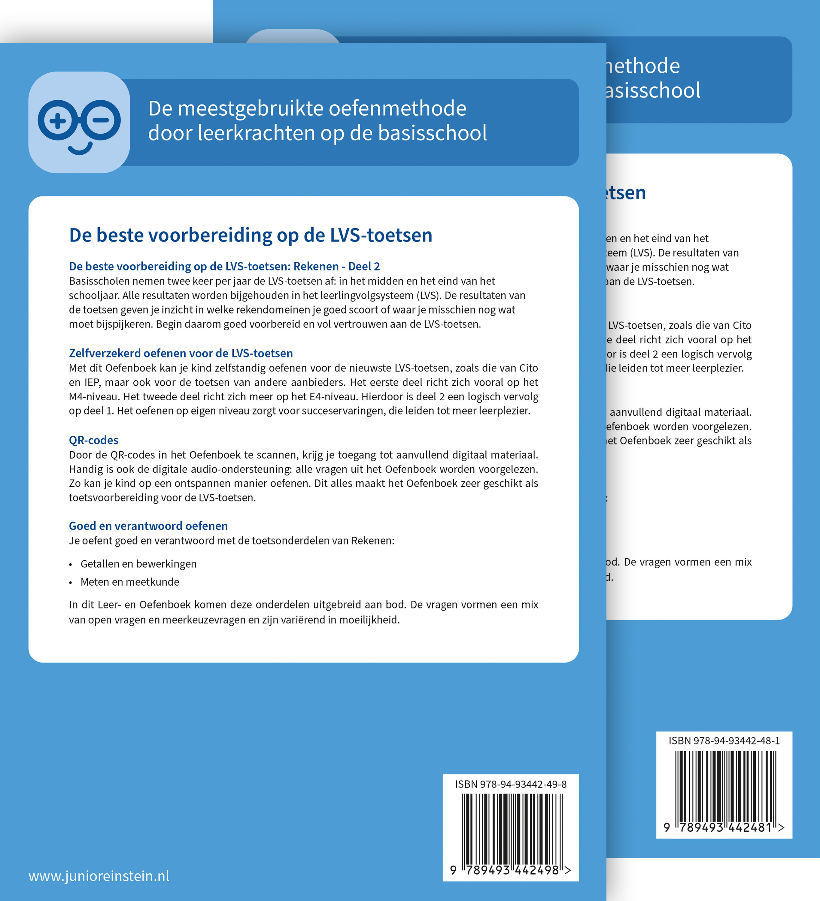 Met de boeken van Junior Einstein bereiden kinderen – met veel succes – zich al meer dan een decennium voor op toetsen. Elk boek is gemaakt door leerkrachten en onderwijsspecialisten onder leiding van Joan Sanders. Al ruim 10 jaar werken ze met passie samen aan het maken van het beste oefenmateriaal voor kinderen op de basisschool, met name voor toetsvoorbereiding. Kinderen, ouders en leerkrachten gebruiken naar alle tevredenheid de oefenmaterialen van Junior Einstein.